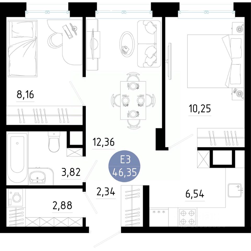 Общая площадь46,35 м²