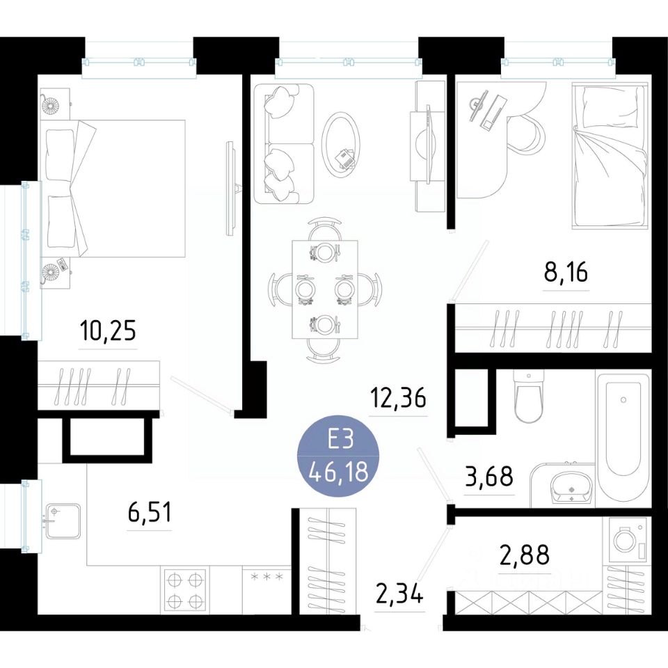 Общая площадь46,18 м²