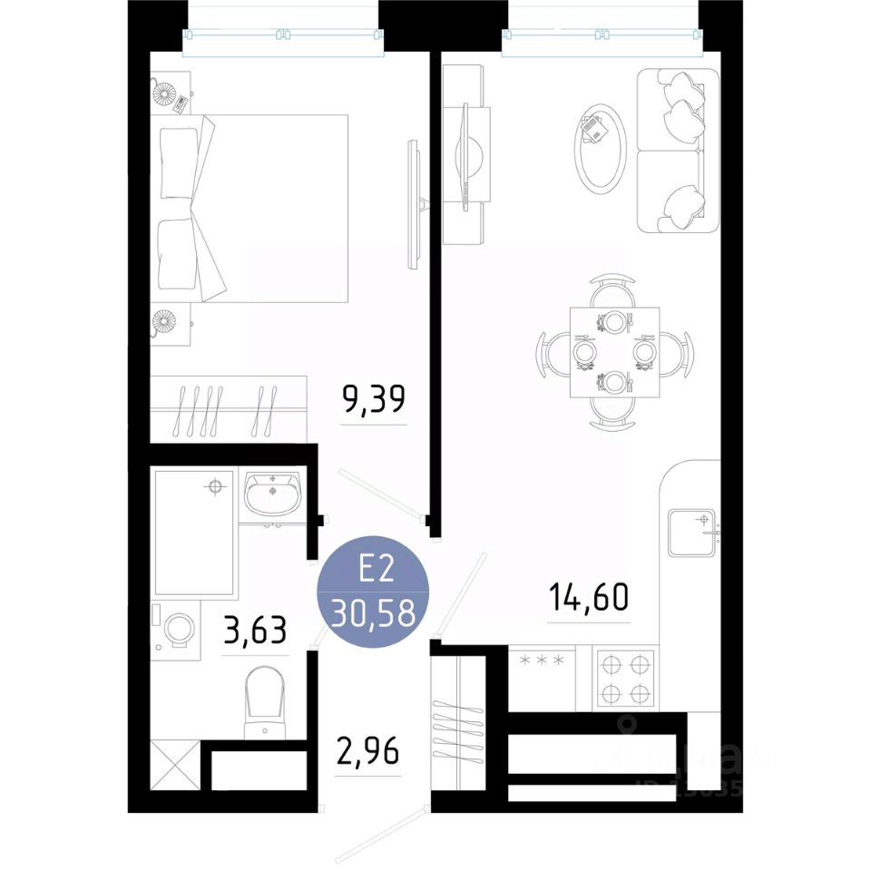 Общая площадь30,58 м²