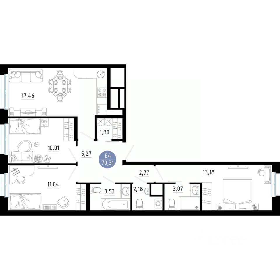 Общая площадь70,31 м²