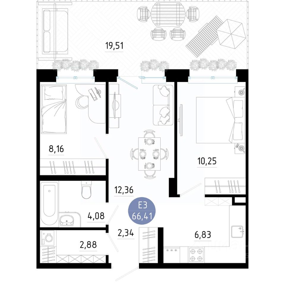 Общая площадь66,41 м²