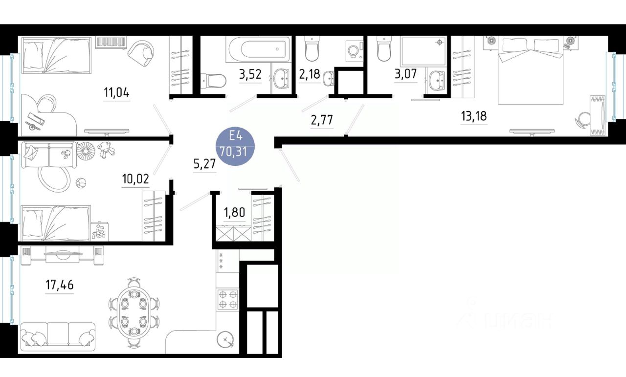 Общая площадь70,31 м²