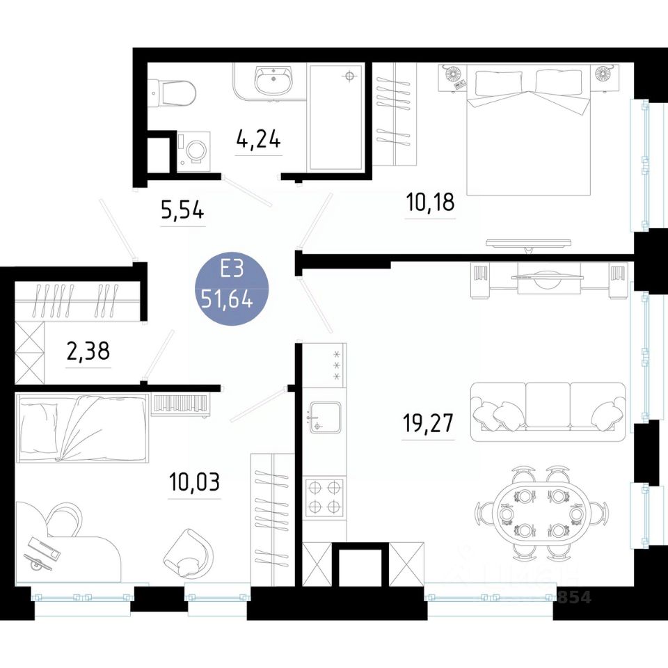 Общая площадь51,64 м²