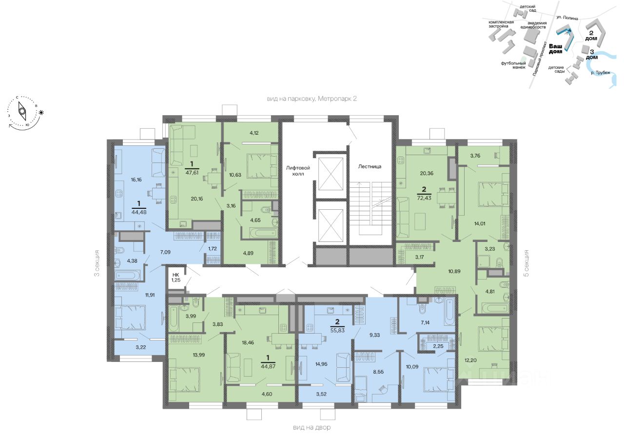 Общая площадь72,43 м²