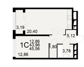 Общая площадь43,96 м²