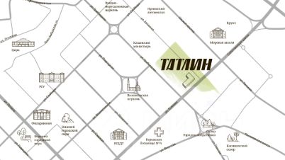 "Татлин" соседствует с уникальными памятниками архитектуры федерального значения мы возводим его на перекрёстке улиц Затинной и Есенина. В пешей доступности школы, детские сады, больница, остановки общественного транспорта, торговые центры, театры.