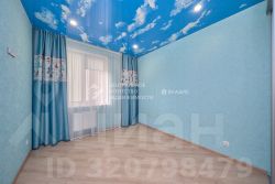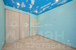 Вторая комната (10,8 кв.м) оформлена в нежных голубых тонах с облаками над головой, а для хранения одежды в стене - вместительный шкаф-купе. Прежде имела назначение детской.