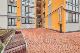 Жилой комплекс из двух домов, объединенных закрытой, свободной от машин, большой территорией с современными детскими и спортивными площадками и зелеными зонами; установлено видеонаблюдение внутри и вокруг дома. Рядом расположена большая автомобильная стоянка с въездом через шлагбаум.