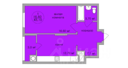 Общая площадь43,1 м²