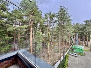 Площадь апартаментов 137.6 м2, три просторные спальни по 15 м2, кухня-гостиная 41.2 м2 со вторым светом и высотой потолков 6 метров, три санузла, закрытая терраса с панорамным остеклением и выходом на балкон, с которого можно любоваться красотой лесного пейзажа и дышать свежим сосновым воздухом.