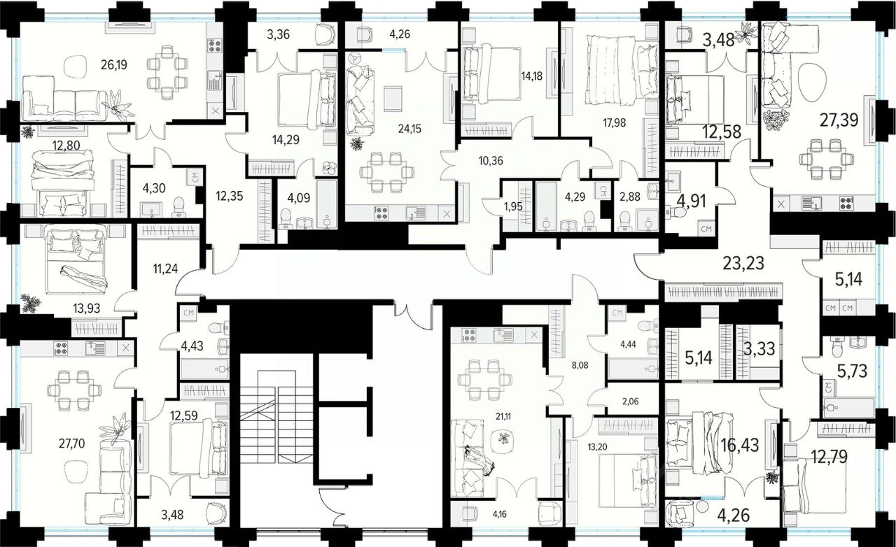 В 1 корпусе воплощается основная архитектурная концепция, сочетающая в себе стиль и функциональность.