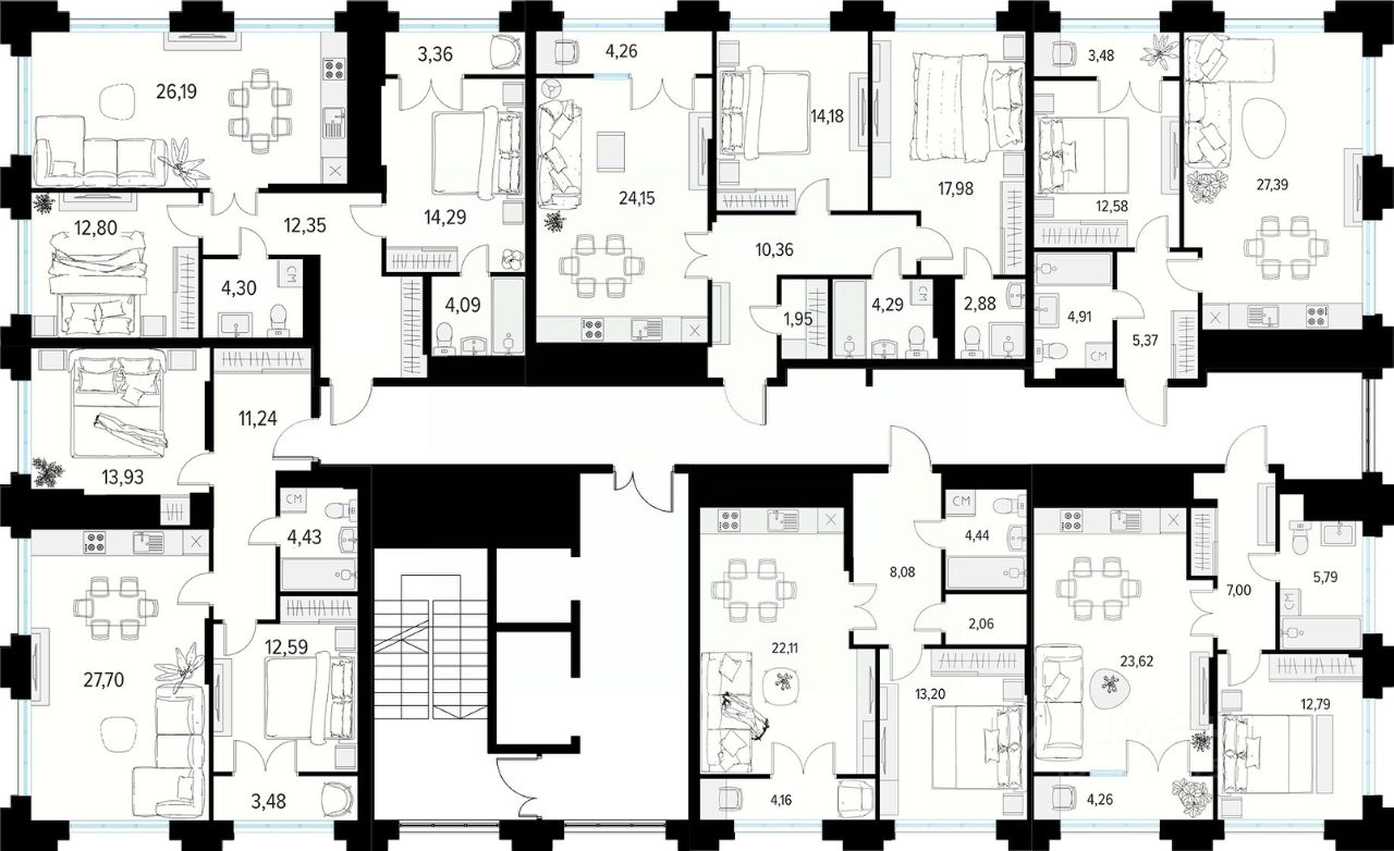 В 1 корпусе воплощается основная архитектурная концепция, сочетающая в себе стиль и функциональность.