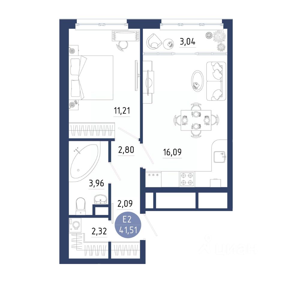 Общая площадь41,51 м²