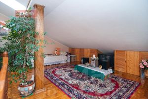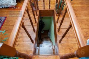 А также на первом этаже располагается вместительная гардеробная комната и светлая лoджия c пpeкpасным панорамным видом на лес.