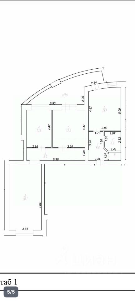 3 комнаты правильной формы: 30,1 м², 13,1 м² и 17,3 м² (расположены на разные стороны для отличного освещения)