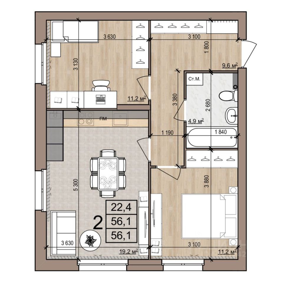 Продаётся 2-комнатная квартира в строящемся доме (Корпус 1), срок сдачи: I-кв. 2029, общей площадью 56.1 кв.м., на 2 этаже. Новый жилой комплекс "Полярная звезда" от застройщика "Зеленый сад" расположен по адресу Рязань, улица Новосёлов, 33Б.