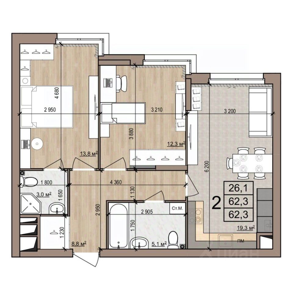 Продаётся 2-комнатная квартира в строящемся доме (Корпус 1), срок сдачи: I-кв. 2029, общей площадью 62.3 кв.м., на 2 этаже. Новый жилой комплекс "Полярная звезда" от застройщика "Зеленый сад" расположен по адресу Рязань, улица Новосёлов, 33Б.