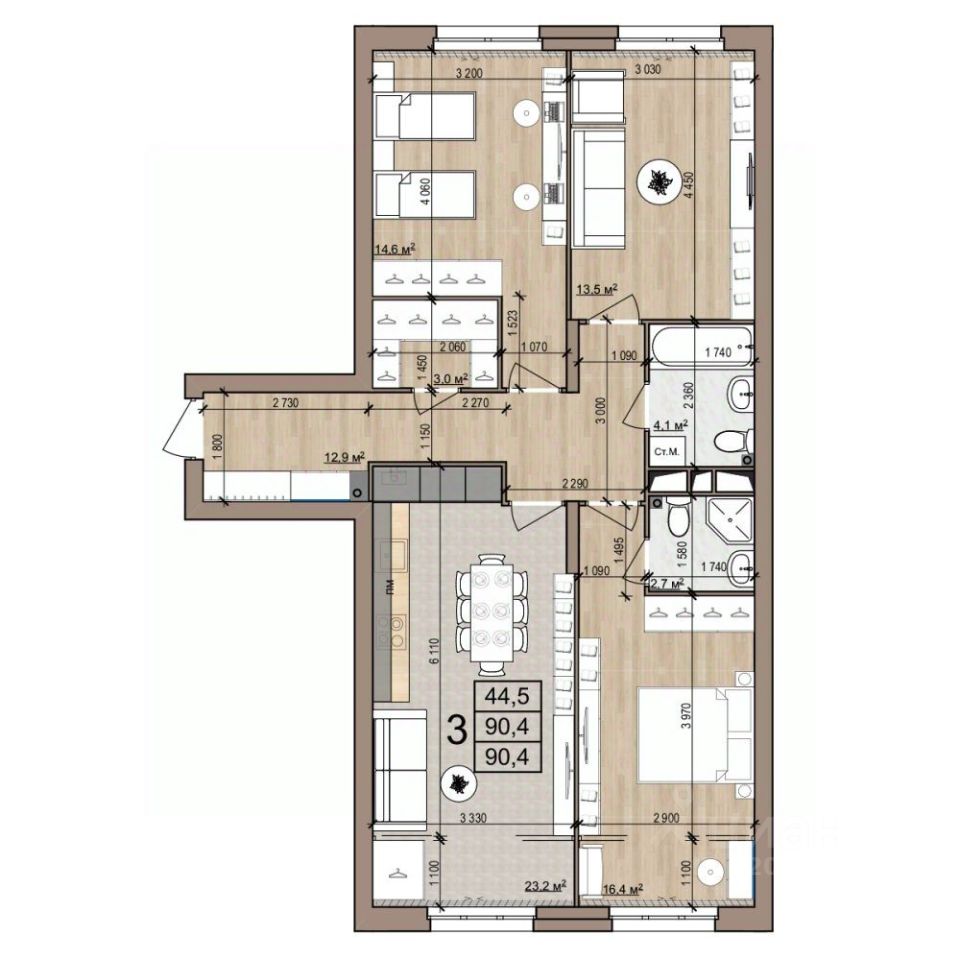 Продаётся 3-комнатная квартира в строящемся доме (Корпус 1), срок сдачи: I-кв. 2029, общей площадью 90.4 кв.м., на 11 этаже. Новый жилой комплекс "Полярная звезда" от застройщика "Зеленый сад" расположен по адресу Рязань, улица Новосёлов, 33Б.