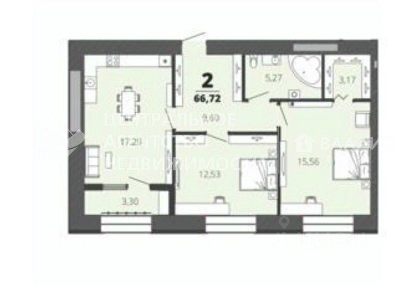 Квартира расположена на 15 этаже 16-этажного дома, построенного из кирпича с монолитными перекрытиями в 2025 году. Общая площадь составляет 66 кв. м, из которых жилая площадь — 63 кв. м. Высота потолков — 2,5 метра, что создаёт дополнительное ощущение простора.