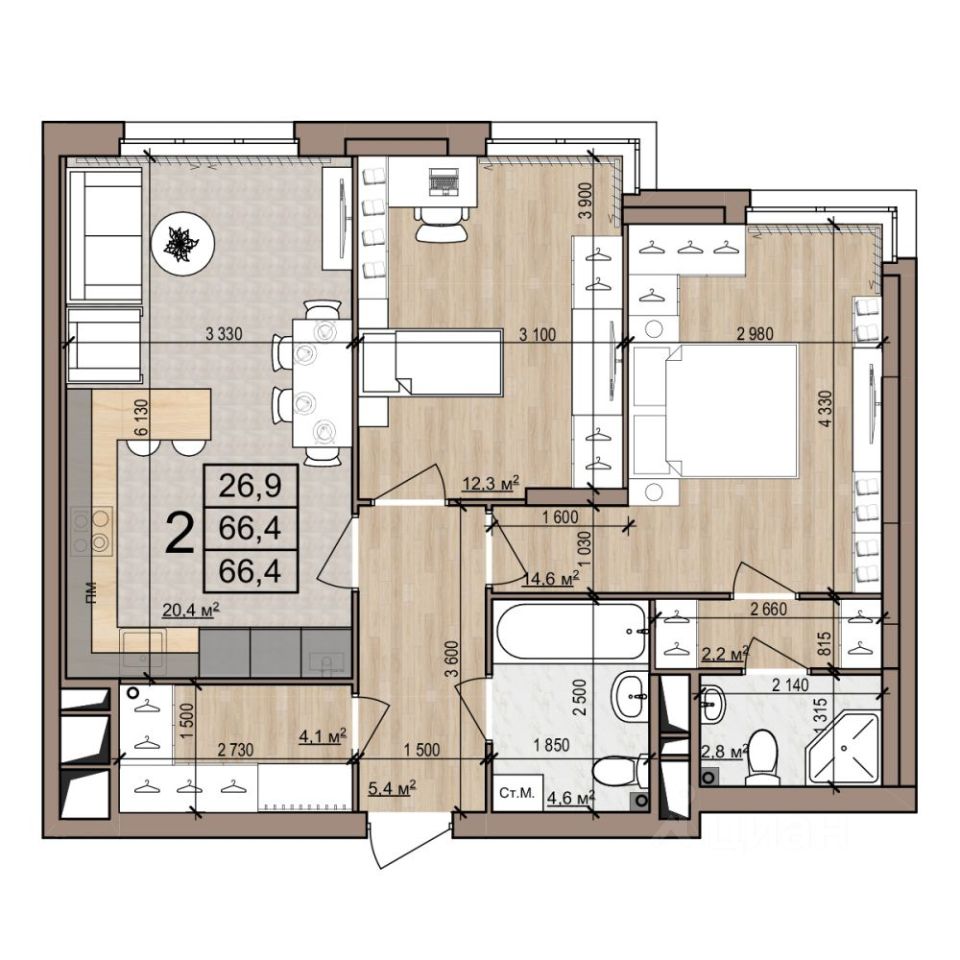 Продаётся 2-комнатная квартира в строящемся доме (Корпус 1), срок сдачи: I-кв. 2029, общей площадью 66.4 кв.м., на 12 этаже. Новый жилой комплекс "Полярная звезда" от застройщика "Зеленый сад" расположен по адресу Рязань, улица Новосёлов, 33Б.