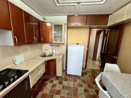 Эта двухкомнатная квартира общей площадью 48,8 кв. м расположена на пятом этаже пятиэтажного блочного дома 1995 года постройки. Жилая площадь составляет 25,58 кв. м, а площадь кухни — 8,1 кв. м. Высота потолков — 2,5 м, комнаты изолированы, а окна выходят на улицу и во двор.