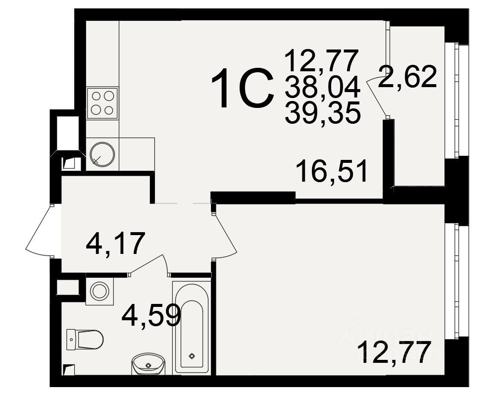 Общая площадь38,04 м²