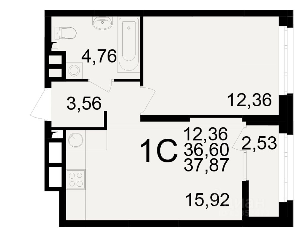 Общая площадь36,6 м²