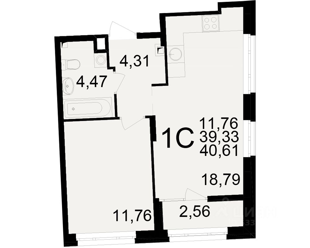 Общая площадь39,33 м²