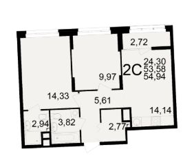 Общая площадь53,58 м²