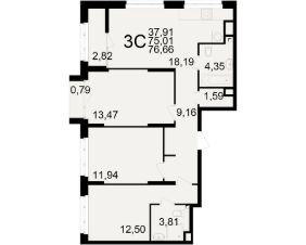 Общая площадь75,01 м²
