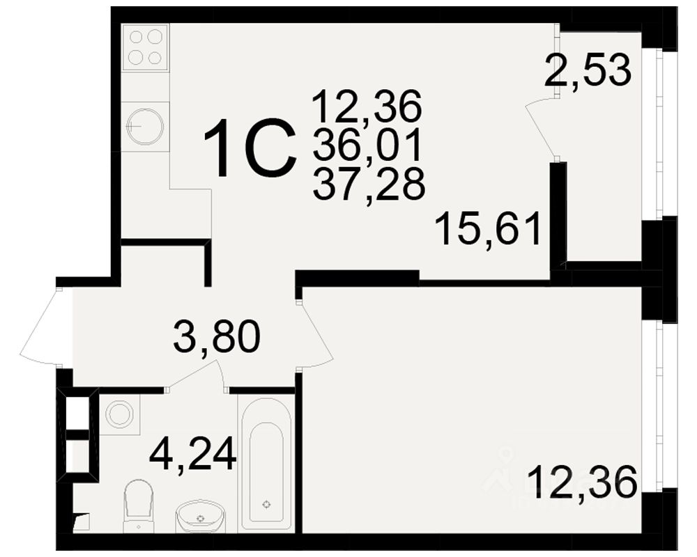 Общая площадь36,01 м²