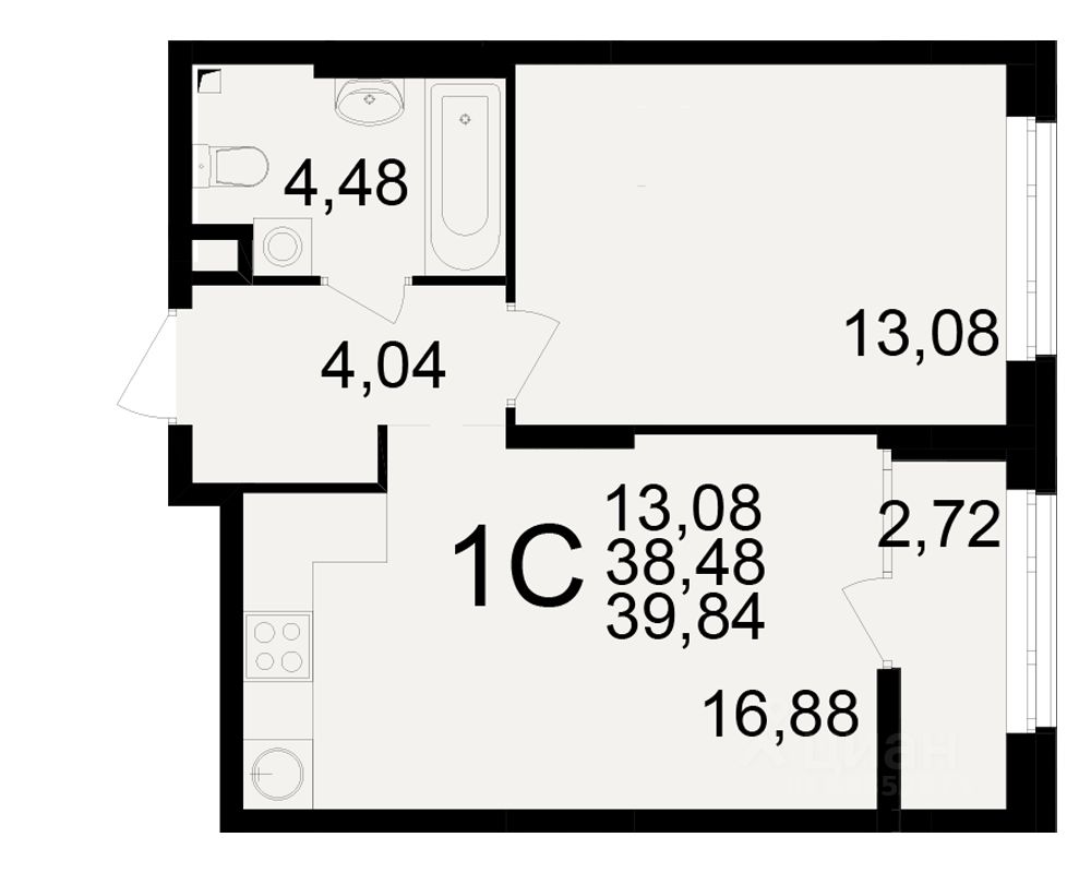 Общая площадь38,48 м²