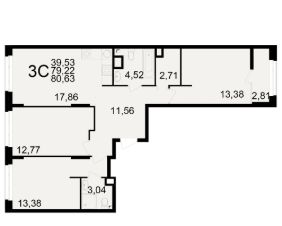Жилая площадь39,5 м²