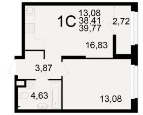 Общая площадь38,41 м²