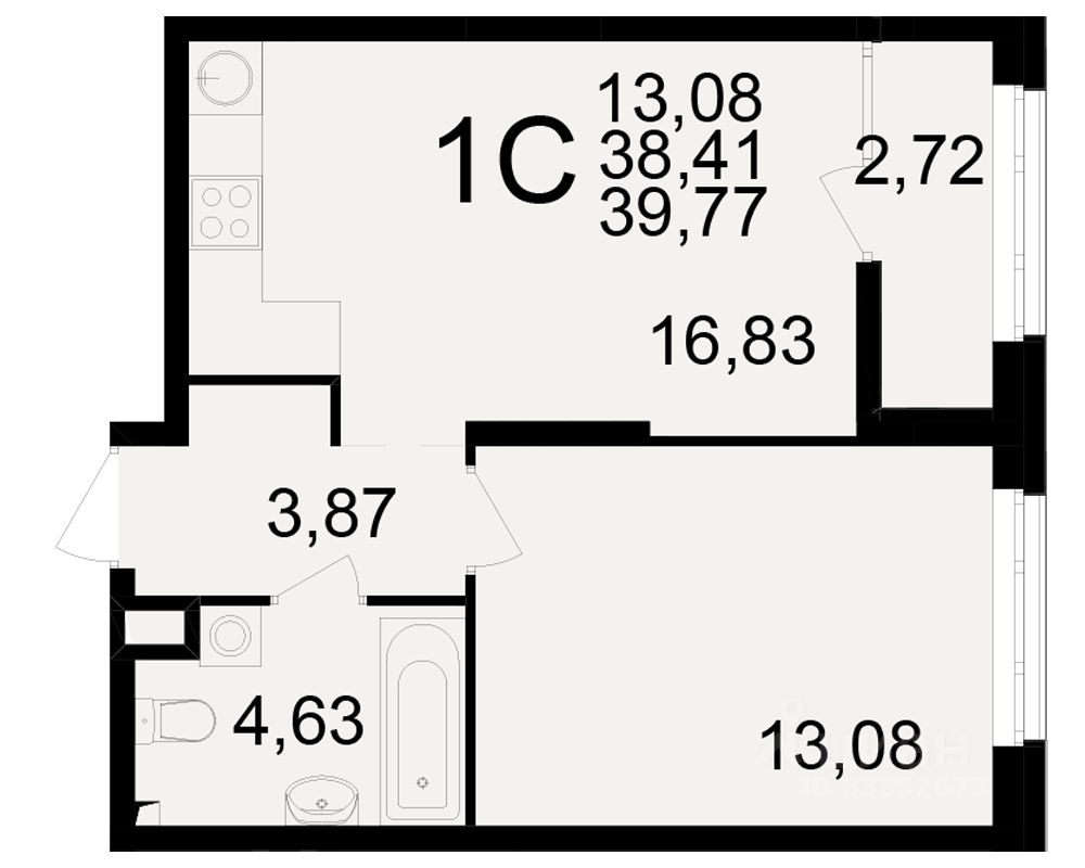 Общая площадь38,41 м²
