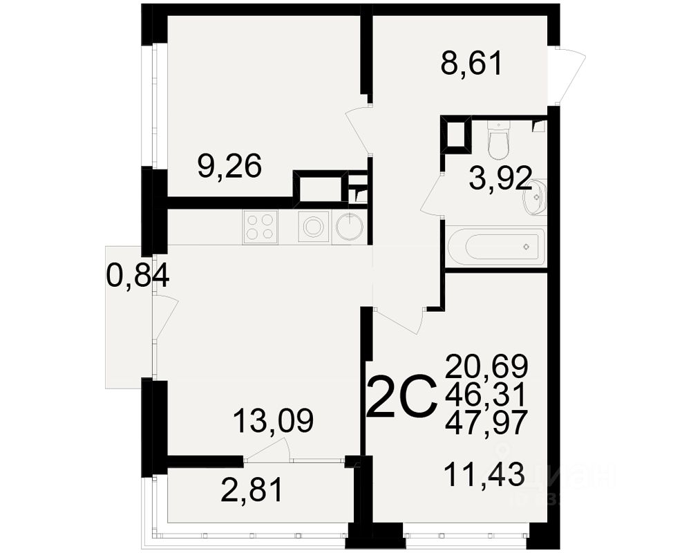 Общая площадь46,31 м²