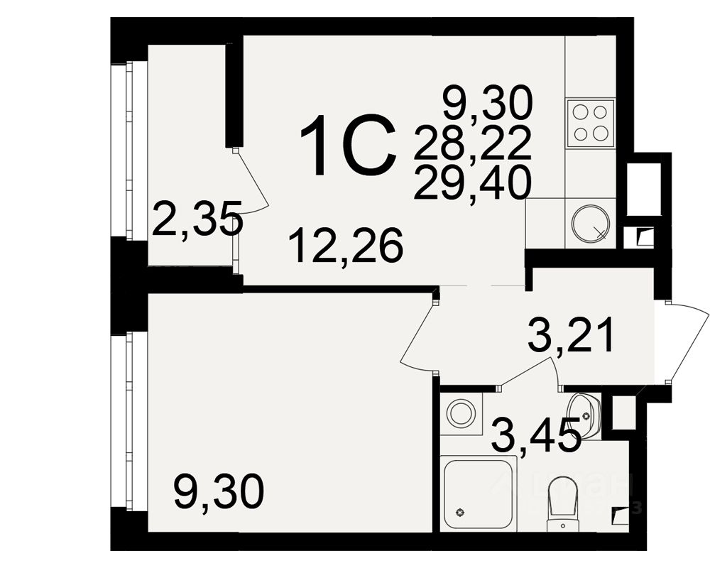 Общая площадь28,22 м²