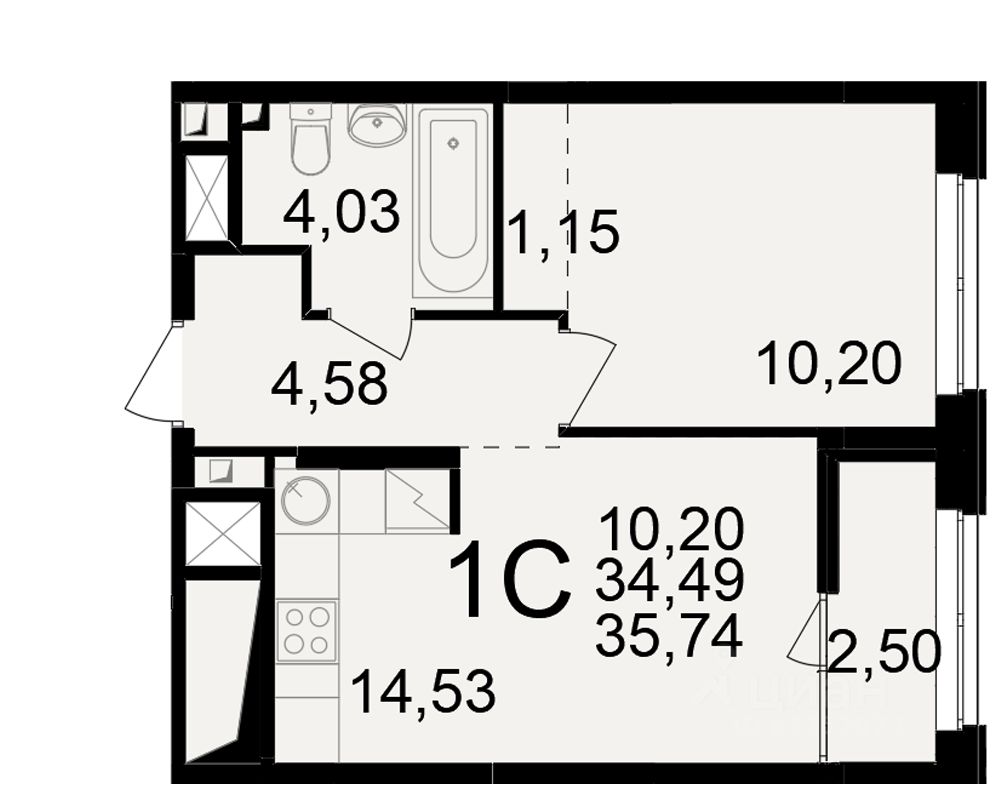 Общая площадь34,49 м²