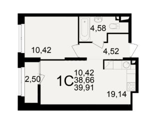 Общая площадь38,66 м²