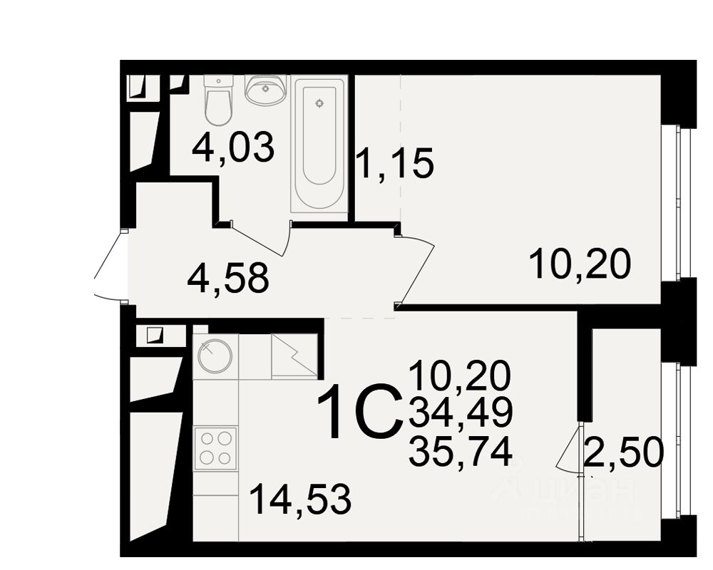 Общая площадь34,49 м²