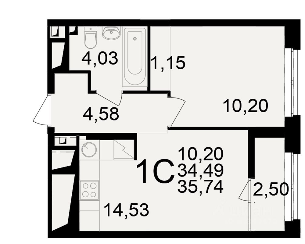 Общая площадь34,49 м²