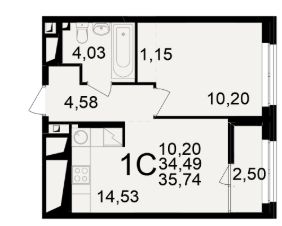 Общая площадь34,49 м²