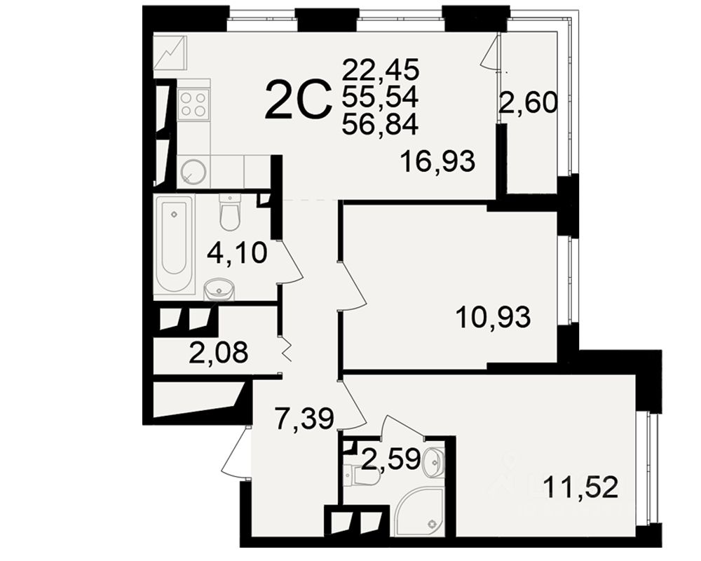 Общая площадь55,54 м²