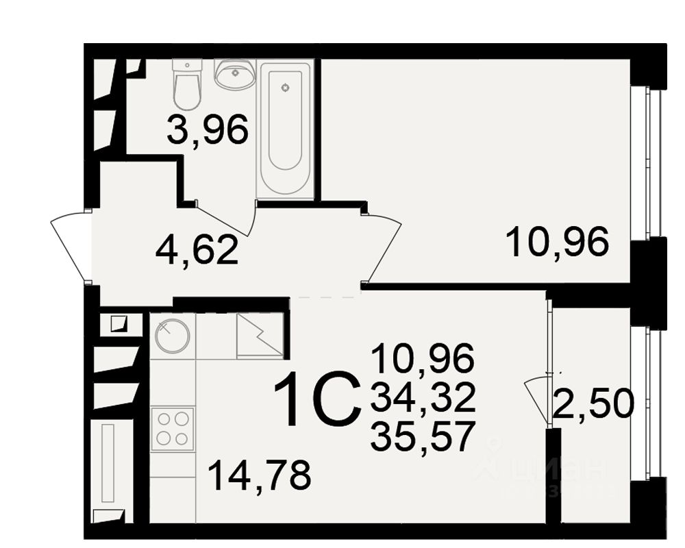 Общая площадь34,32 м²