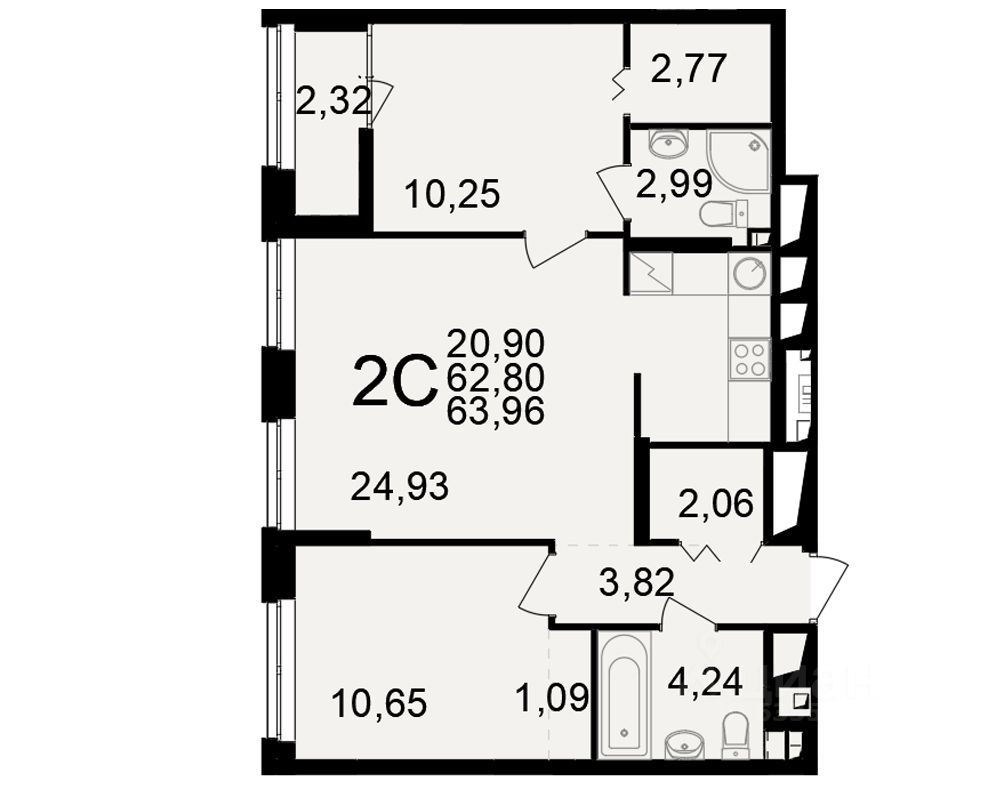 Общая площадь62,8 м²