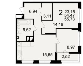 Общая площадь54,47 м²