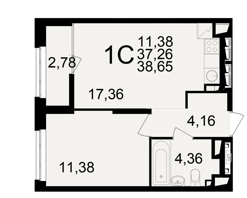 Общая площадь37,26 м²