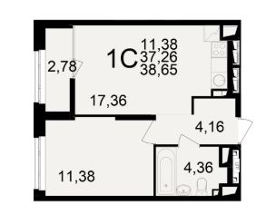 Общая площадь37,26 м²