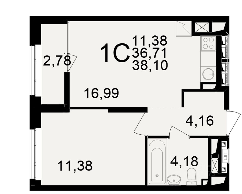 Общая площадь36,71 м²