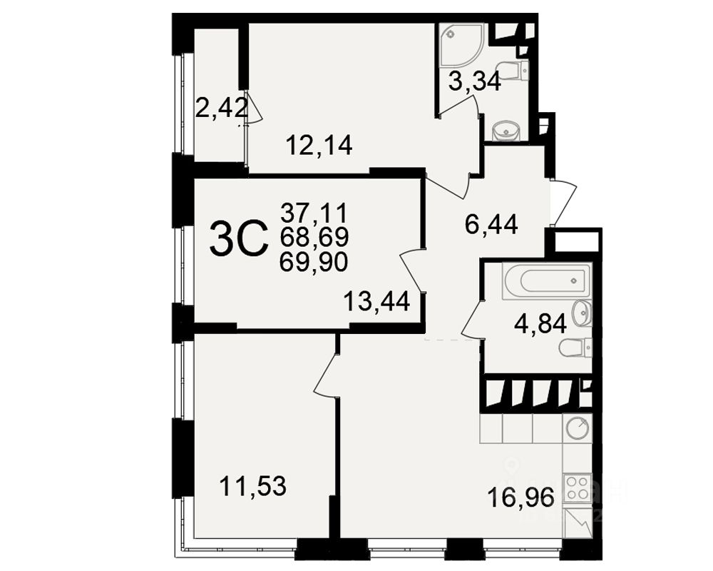 - электропроводка на медном кабеле 220 V с установкой электрического щита на лестничной площадке и распределительного щита в квартире;- штукатурка кирпичных стен, кроме стен лоджий, откосов дверных и оконных проемов, ниш прохождения стояков водопровода и канализации. Участки монолитных конструкций не штукатурятся;- стяжка пола;- шумоизоляция пола;- система отопления и горячего водоснабжения от крышной котельной с установкой прибора учета расхода тепла;- установлены приборы (радиаторы)отопления;- установлена силовая электрическая розетка для самостоятельной установки Участником электрической плиты;- смонтированы внутриквартирные стояки водоотведения (канализация), точки подключения холодного и горячего водоснабжения от коллекторной разводки (коллектор на лестничной площадке) с установкой приборов учета. Разводка труб водоснабжения и водоотведения (канализация) до сантехнических приборов не производится, сантехнические приборы: унитаз, ванна, мойка, раковина- не устанавливаются;- установлена электрическая розетка для подключения полотенцесушителя. Полотенцесушитель не устанавливается;- оконные проемы без выхода на лоджии остеклены ПВХ-профилем с отливом без подоконников; оконные проемы с выходом на лоджии остеклены ПВХ-профилем, без отлива без подоконника; лоджии остеклены, москитные сетки не предусмотрены, места запенивания монтажной пеной и укрывания гидроизоляционным герметиком не штукатурятся;- установлена входная металлическая дверь;- установлен домофон.